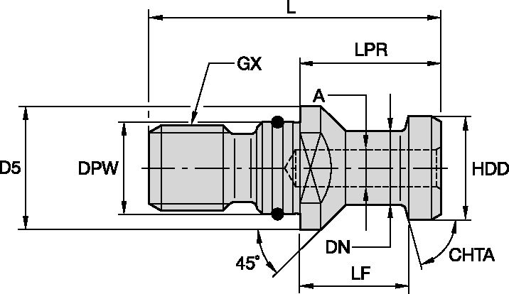 Diameter, A 11.55 Diameter, D5 35.9 Diameter, DN 20.95 Diameter, DPW 24.97 Diameter, HDD 27.97 Längd, L 74 Längd, LF 25 Längd, LPR 34 Vinkel, CHTA 75° Gänga, G3/GX/G3X M24 X 3 Genomgående hål Nej Antal O-ringar 1 Standard/Utförande DIN 69872 Form B System, storlek 50 Åtdragningsmoment (Nm) 143 Artikelnummer RK50DVBM Beställningsnummer 1192429