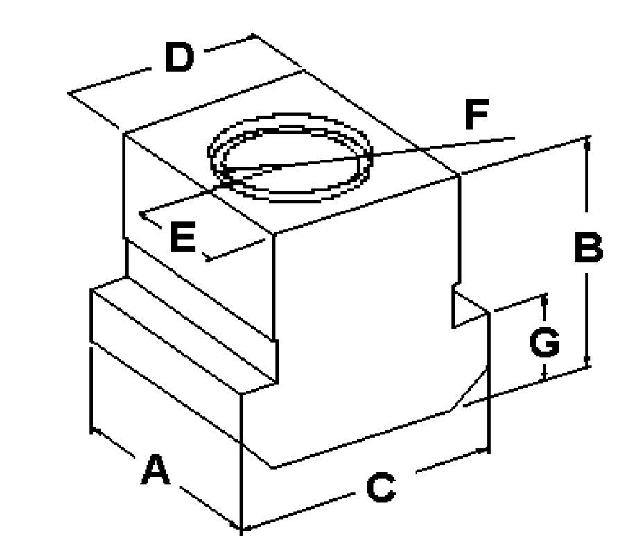 Chuck, leverantör SMW-Autoblok För chuckdiameter Ø400-800 Spårbredd, D 25.5 Dimension, A 30 Dimension, B 34 Dimension, C 35 Dimension, E 15 Dimension, F M20 Dimension, G 15 Material 39NiCrMo3 Passar SMW-Autoblok CLD250-315;AND400-450 ALD400-450;BHD400-800 BHD/FC400-630 HYDL400-450;HYDN400-450